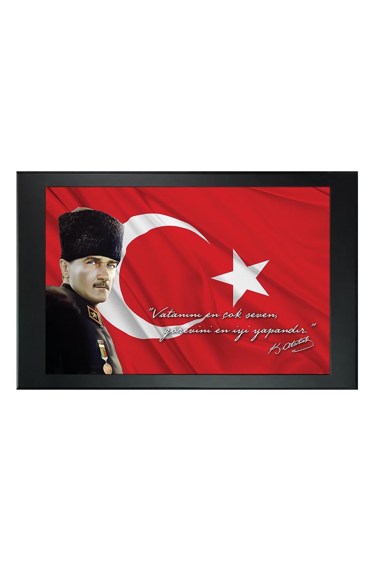 Resimli makam panosunun çerçeveleri MDF dir ve üzerlerine suni deri kaplanmıştır. Makam panosunu suni deri üzerine birinci sınıf dijital baskıdır. Resimli makam panolarında özel olarak hazırladığımız görseller kullanılmıştır. Bu görseller Türk Bayrağı, Atatürk Görselleri ve Ata Sözleri İçermektedir. Müşterilerimizin istğine göre özel tasarımlar ve özel çalışmlarda yapılmaktadır.